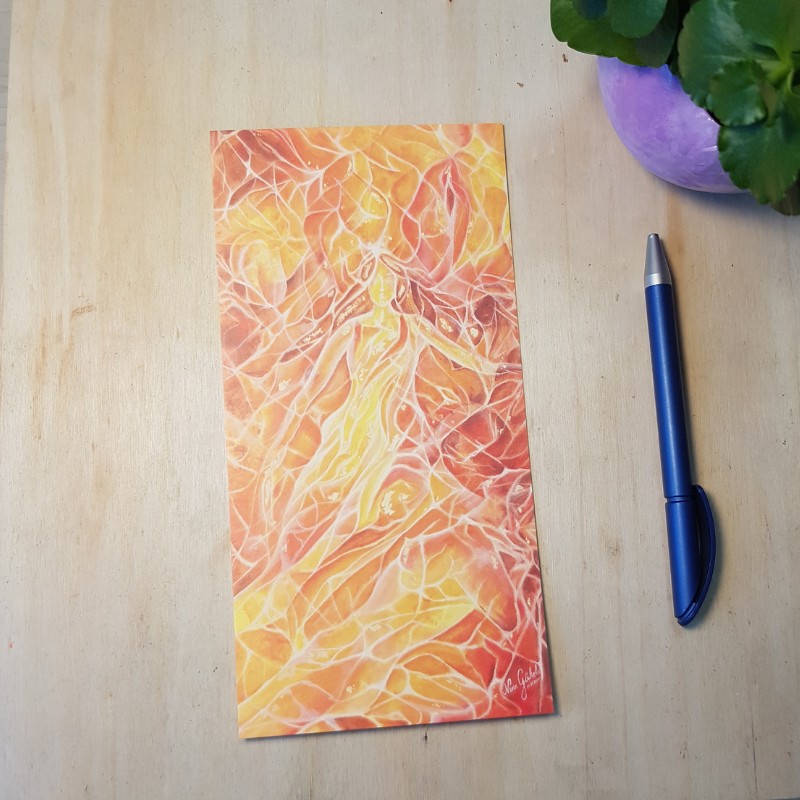 Die Postkarte „Lilith – Feuer der Weiblichkeit“ zeigt kraftvolle feurige weibliche Qualitäten. Sie stärkt dich in deiner Mitte und deinem Schoßraum dein Feuer zu entfachen.