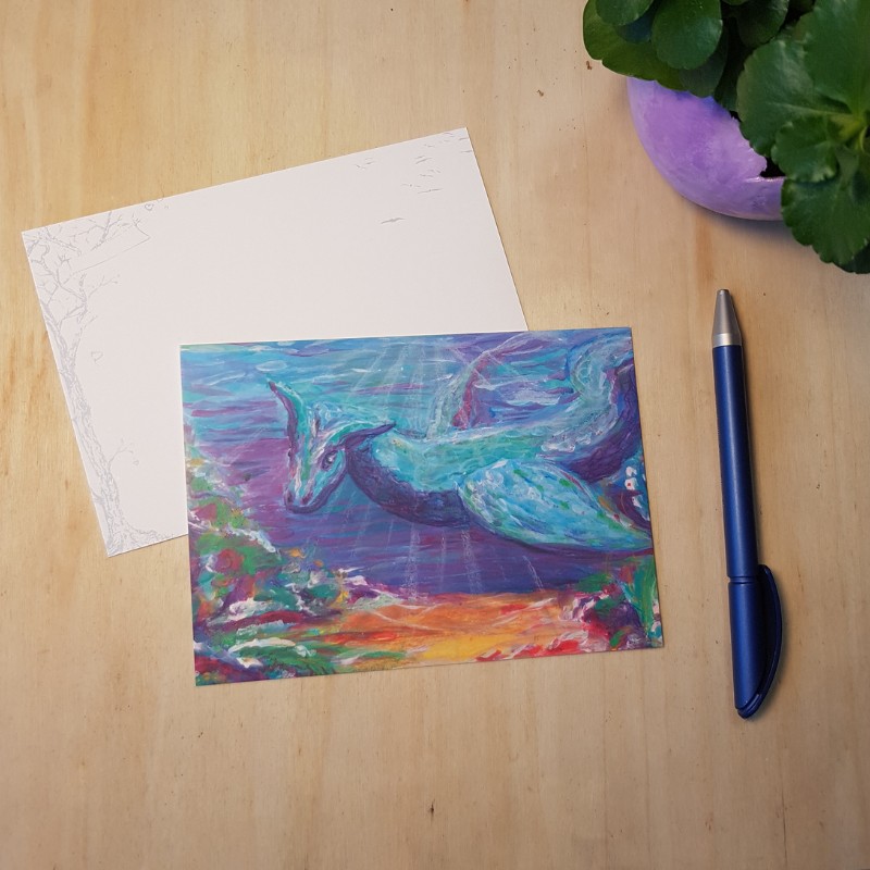 Der „Wasserdrache“ taucht mit dir in eine magische Unterwasserwelt. Er begleitet dich dabei, in deine Gefühlswelt einzutauchen, sanft und fließend zu sein und dich von den Wellen an der Oberfläche des Lebens nicht beeindrucken zu lassen.